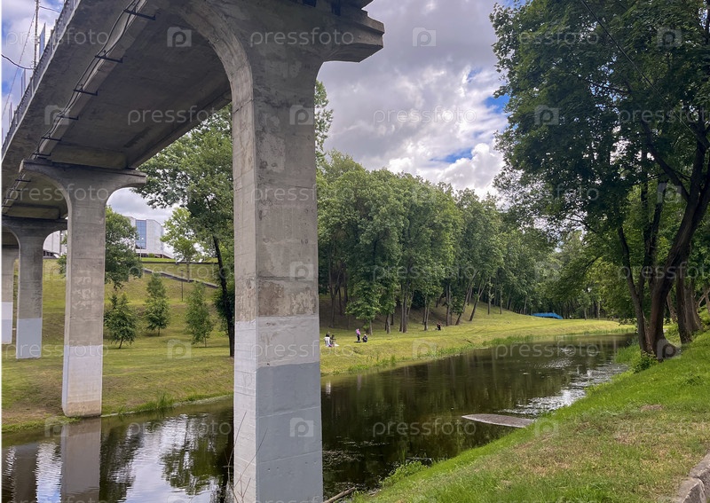 Мост через реку в городском парке в Витебске, Беларусь