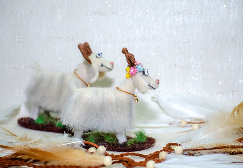 Две игрушечные козы из войлока