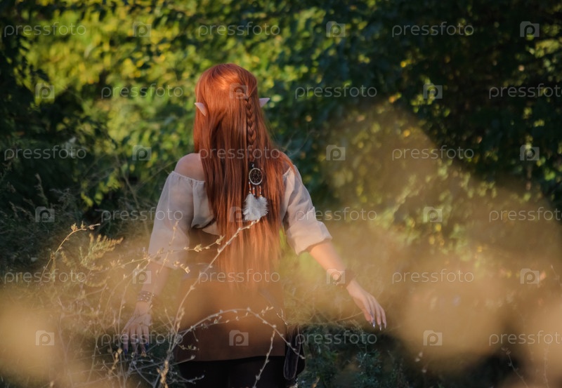 Девушка-элф в лесу, задний вид