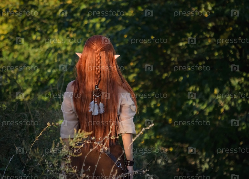 Девушка-элф в лесу, задний вид