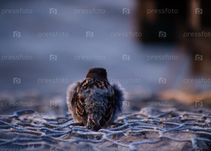 Воробей сидит на сетевом рабе