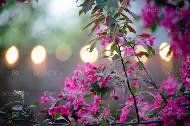 Ярко-розовые цветы на зеленом фоне с боке