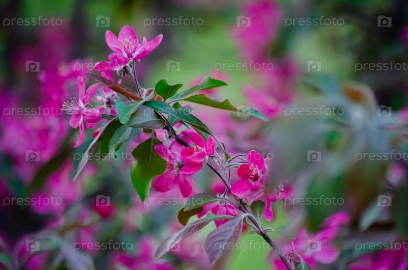 Ярко-розовые цветы на зеленом фоне с боке