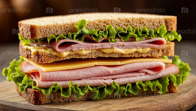 Большой двойной сэндвич лежит на деревянном доске