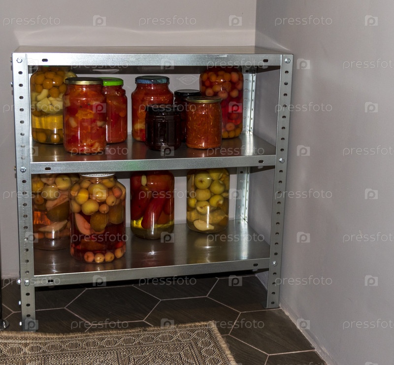 Сборка оцинкованной стальной стойки с банкой с различными видами укропов и консервов на ней
