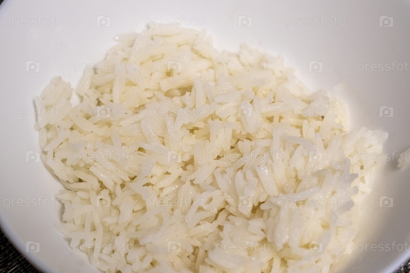 Картина приготовленного белого риса в миске