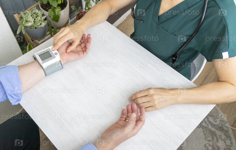 Врач измеряет кровяное давление пациента