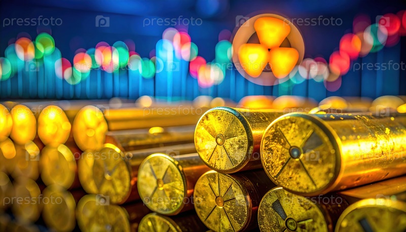 Складываемые ядерные топливные стержни со знаком радиации и боковыми огнями - это технологии атомной энергетики и уранная промышленность