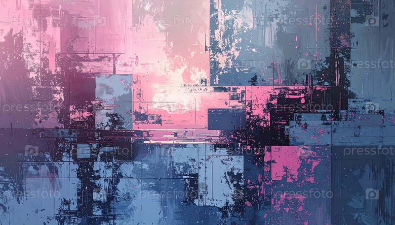 Геометрическая абстрактная живопись с розовыми и синими тонами, символизирующая цифровое искусство современной архитектуры и футуристическую технологию фоновой композиции