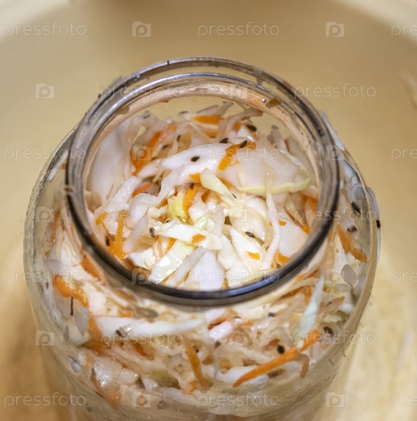 Стеклянная банка с домашней кислой капустой
