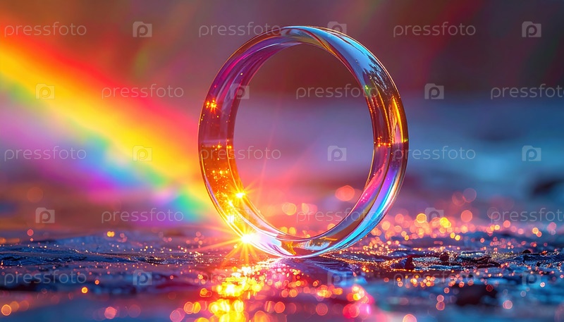 Красочное стеклянное кольцо, отражающее радужный свет, символизирующее единство, разнообразие любви и баланс в современном художественном выражении и дизайнерских концепциях