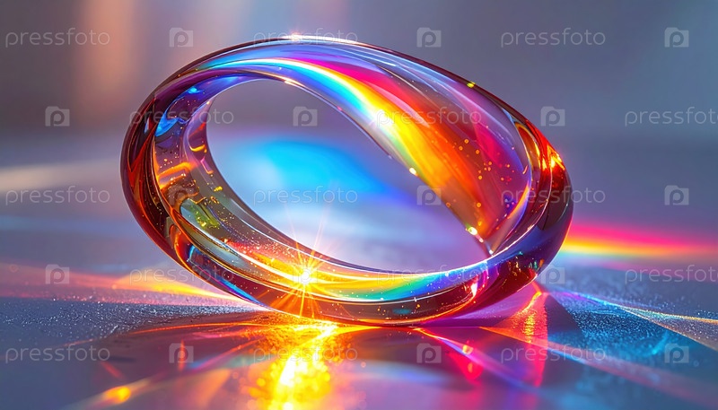 Яркая стеклянная петля, символизирующая бесконечность и преломление света, представляет творчество, инновации и безграничную энергию через спектр сияющих цветов и отражений