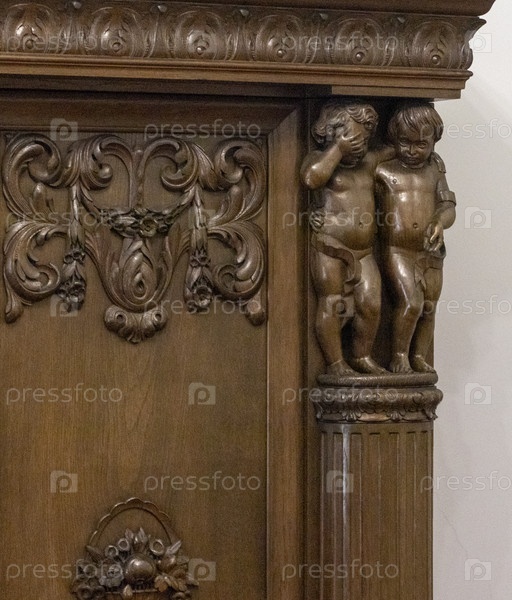 В стиле эпохи Возрождения резьба в дубе или ореховом ящике или шкафу. антиквариат