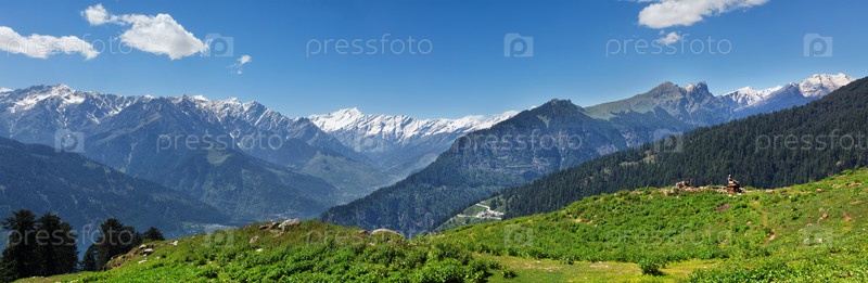 Панорама Гималаев возле Манали, долина Куллу, Химачал-Прадеш, Индия