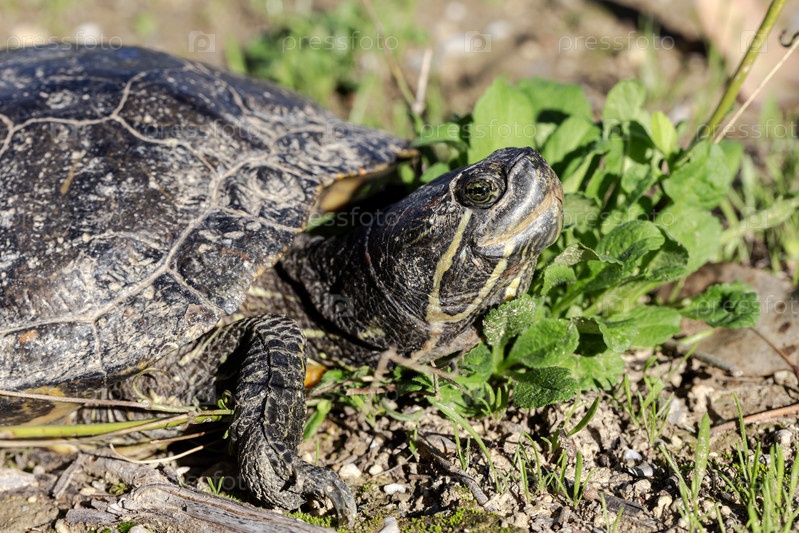 Сдвигающийся пруд (Trachemys scripta Scripta) вблизи