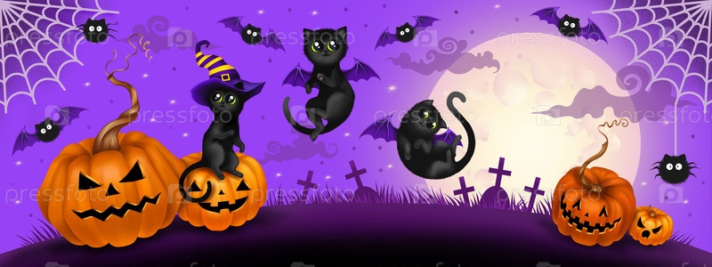 Знамя Хэллоуина 'Черные кошки'