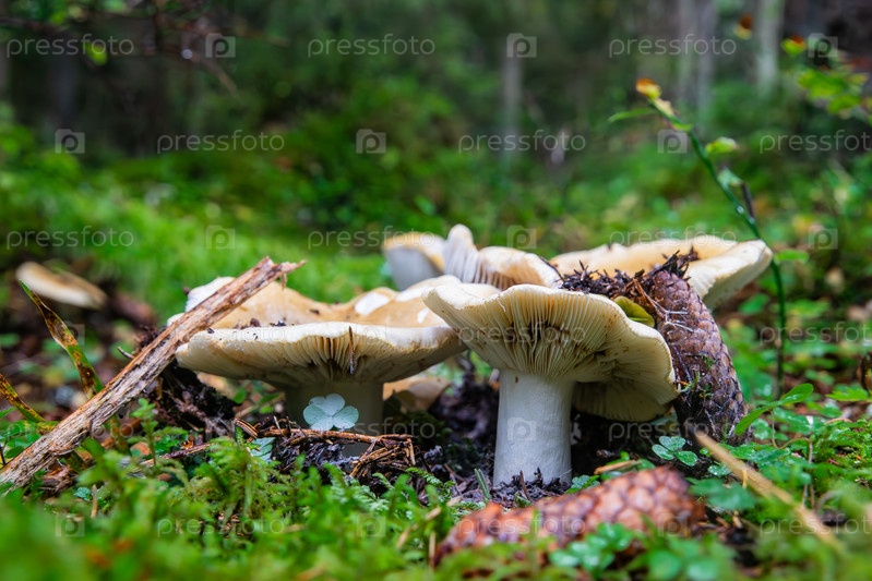 Дикие грибы сырые в лесу