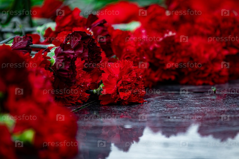 Красные гвоздики на гранитной плите
