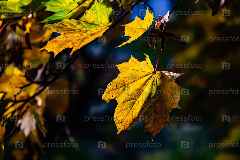 Желтые осенние кленовые листья на ветке