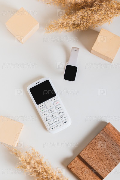 Беспроводная связь между кнопочным телефоном и фитнес-браслетом сверху и вертикальным видом