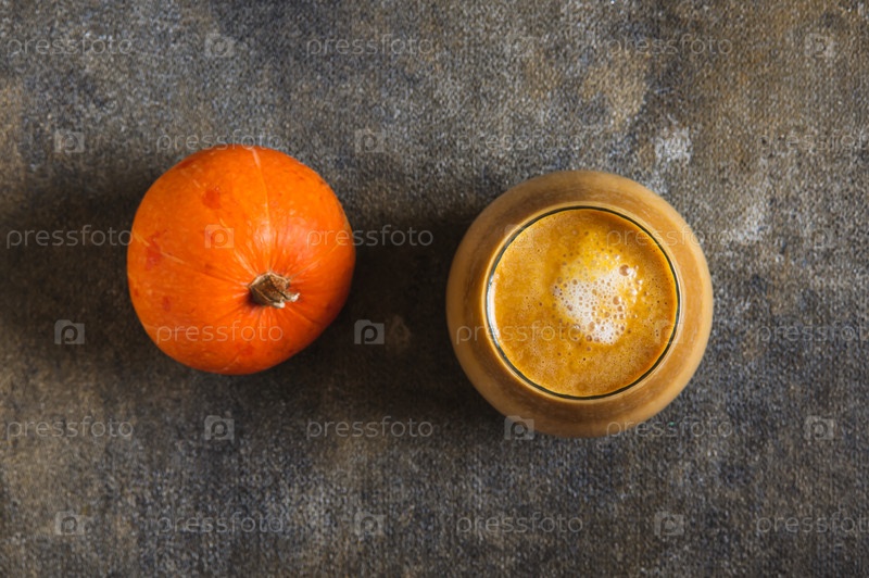 Закройте нагревающее тыквенное латте в стакане к вершине стола