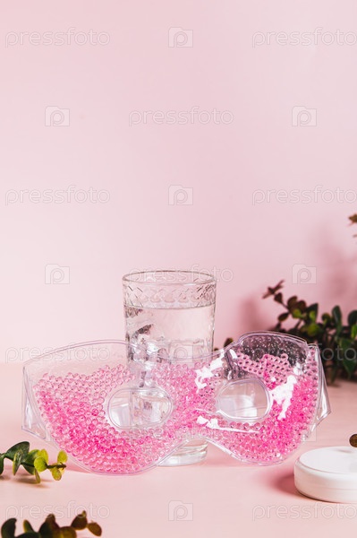 Охлаждающая криоледяная маска для лица на розовом фоне вертикальный вид