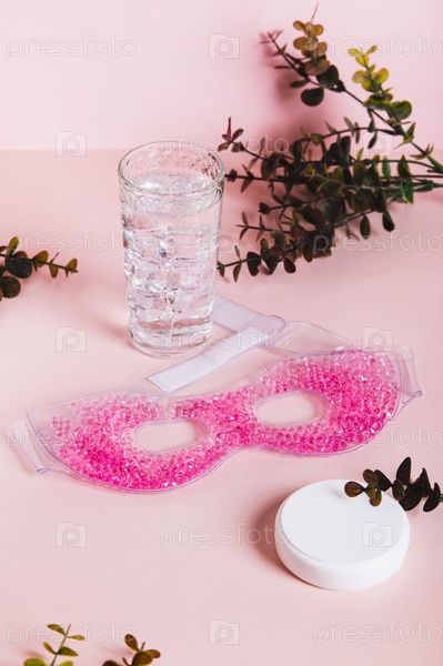 Модный гаджет для ухода за кожей крио на розовом столе с вертикальным видом