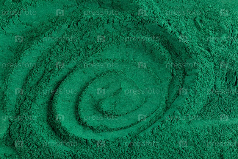 Красивый абстрактный фон натурального порошка спирулины. Мягкие волнистые линии зеленого цвета природного порошка водорослей. пищевая добавка. детокс