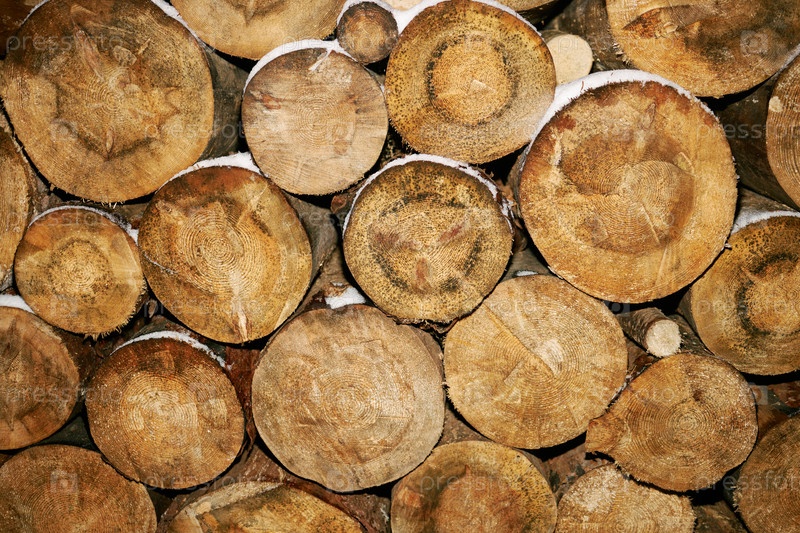 Накопленные бревна древесины, показывающие натуральную текстуру дерева и круговые узоры