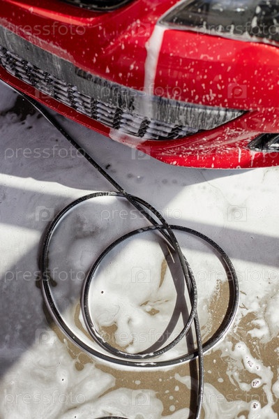 Мытье автомобильного бампера с мылом и водой