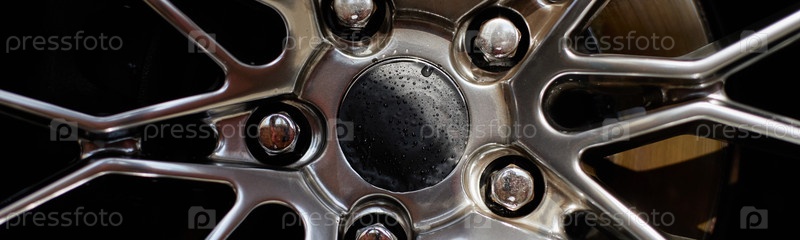 Близость к современному колесному покрытию автомобиля, показывающему металлические спицы и орехи