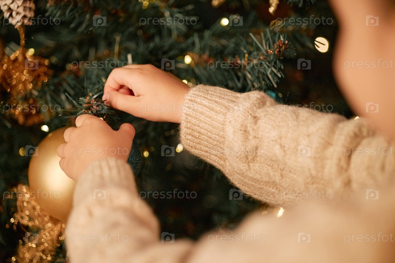 Дети украшают рождественскую елку орнаментами во время праздничного сезона