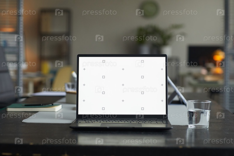 Современный ноутбук, отображающий пустой экран на офисном столе во время рабочего дня