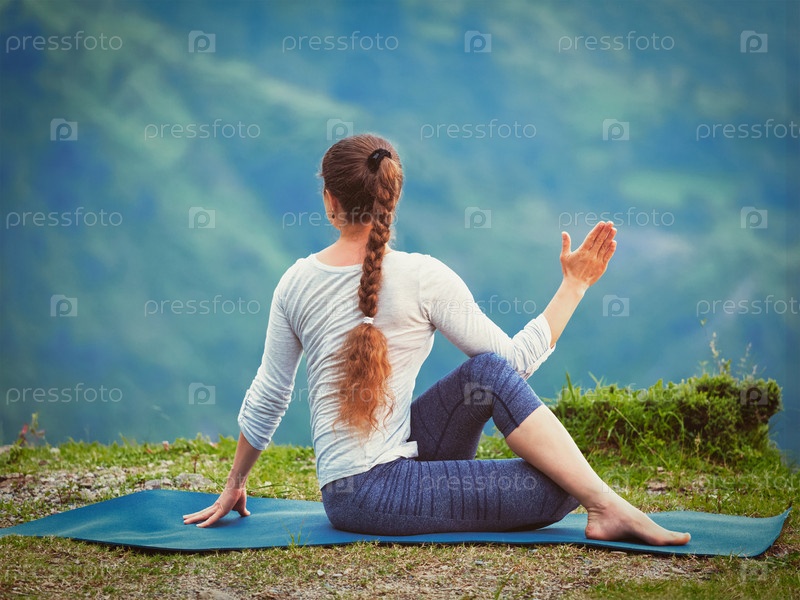 Женщина практикует йогу Асана на открытом воздухе