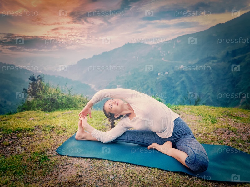 Молодые в форме маты докет Hatha Yoga puinaports