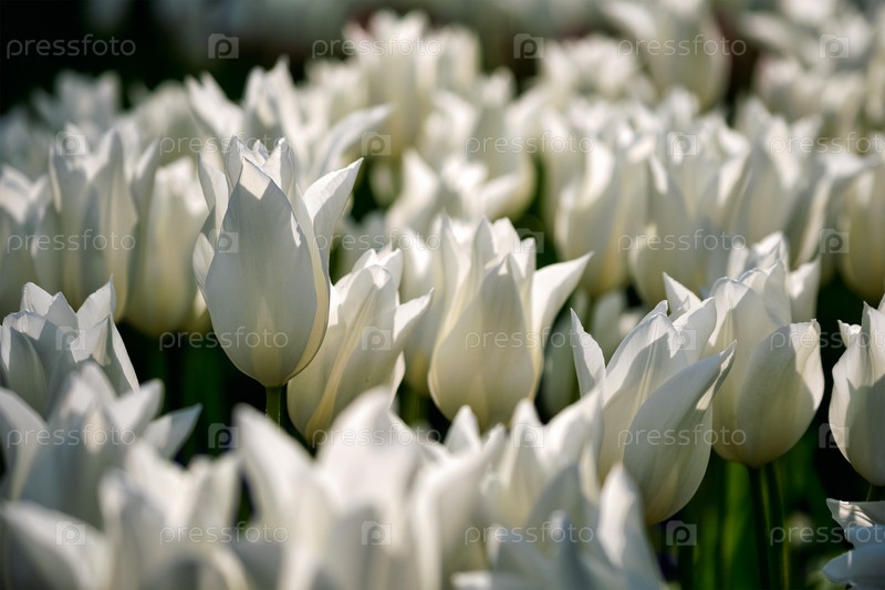 Цветущие белые тюльпаны в цветочном саду