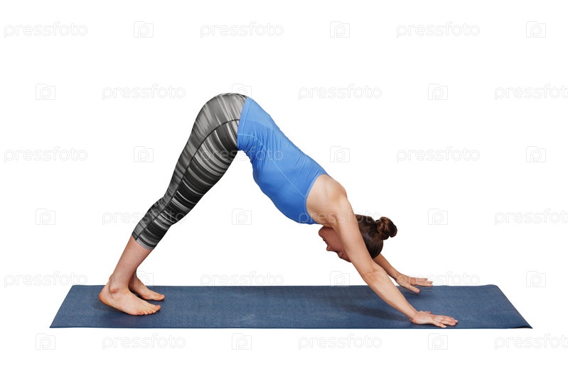 Ашьябо Виняс йога женщина Сурья Намаскар Солнце Приветствие Адхокла Свайна - собака изолирована