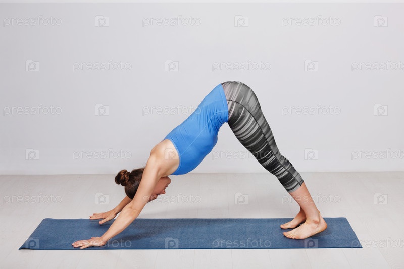 Женщина, которая делает Ashyalda Vinyas Yoga Puna Adho выглядит как сван