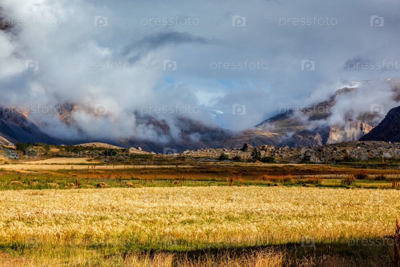 Гималайские горы в облаках в долине Спити, Химачал-Прадеш, Индия