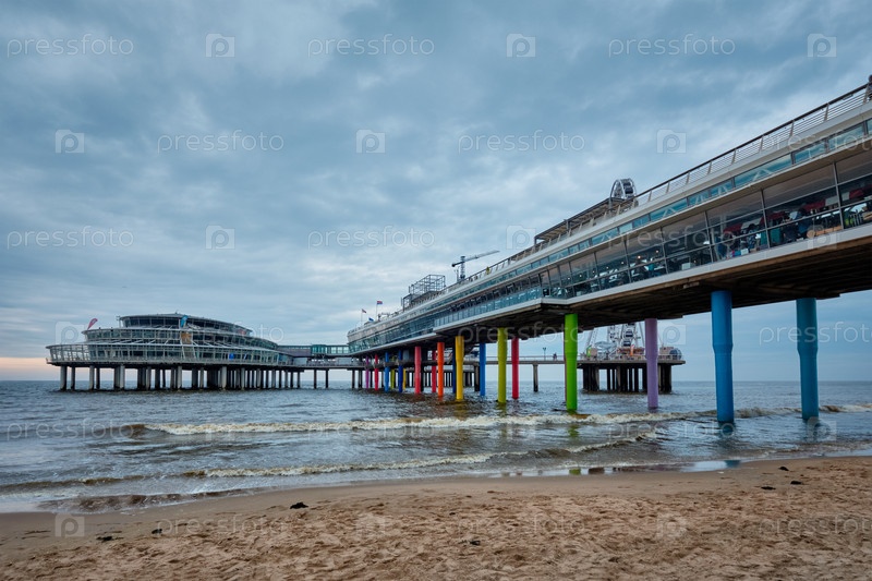 Пляж Scheveningen Pier Strandweg в Гааге с колесом обозрения