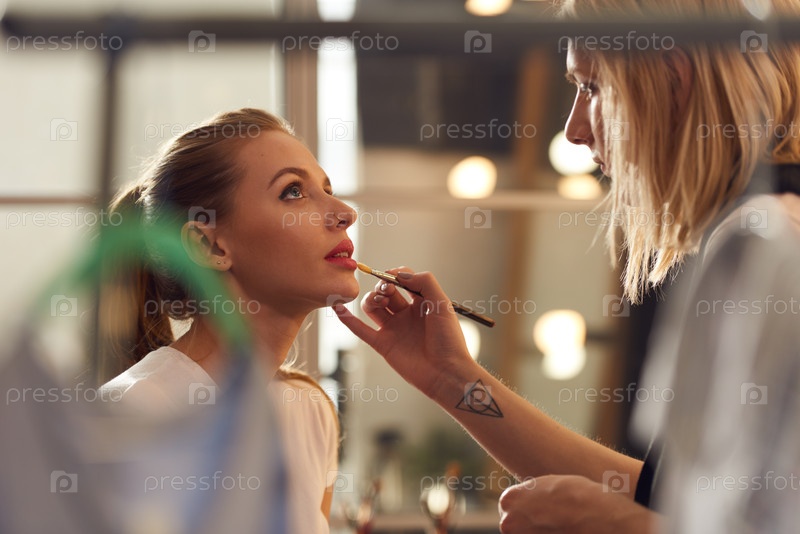 Андрогинный гримёр, делающий макияж своему другу