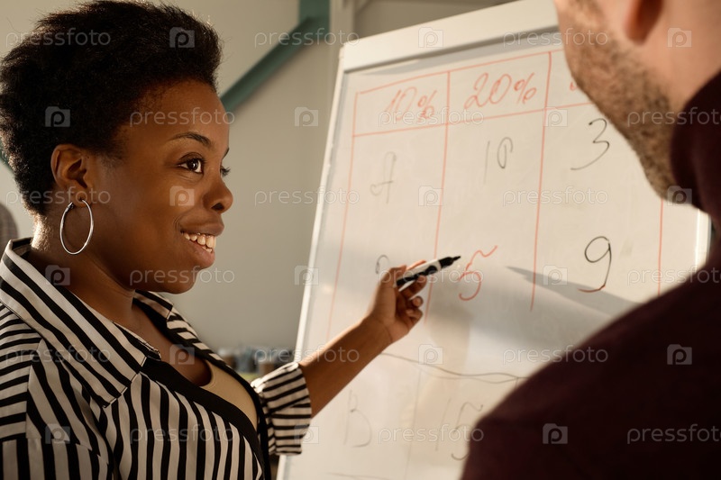 Женщина делится идеями с коллегой по работе в офисе