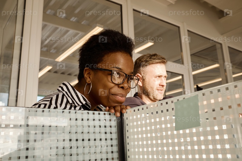 Разнообразные коллеги работают в современном офисе