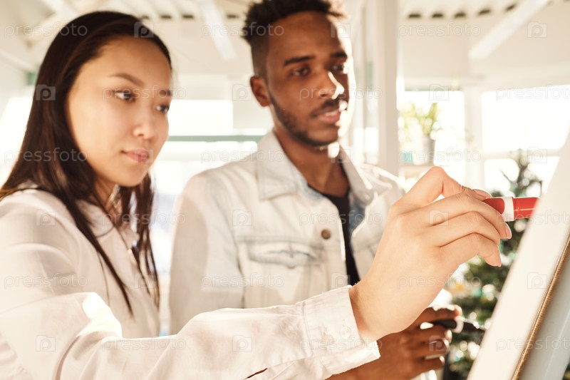 Различные коллеги пишут идеи на борту
