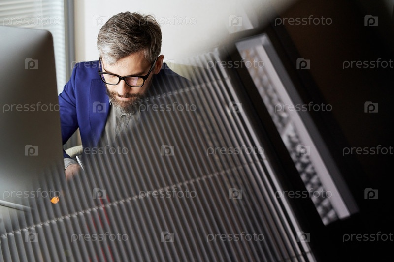 Менеджер, работающий за офисным столом Мужчина