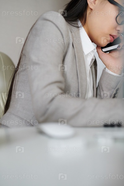 Офисный работник разговаривает по телефону на рабочем месте
