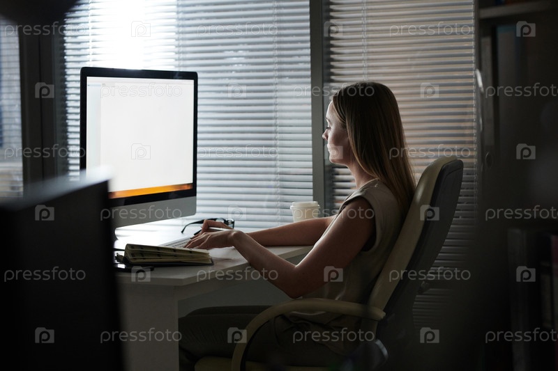 Руководительница, работающая сверхурочно в офисе