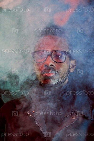 Портрет стильного чернокожего человека в облаке дыма
