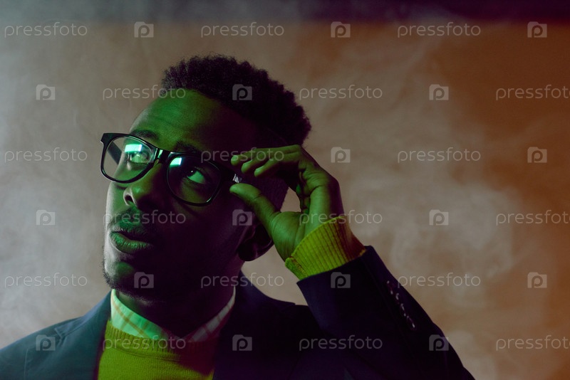 Художественный портрет молодого чернокожего человека в очках