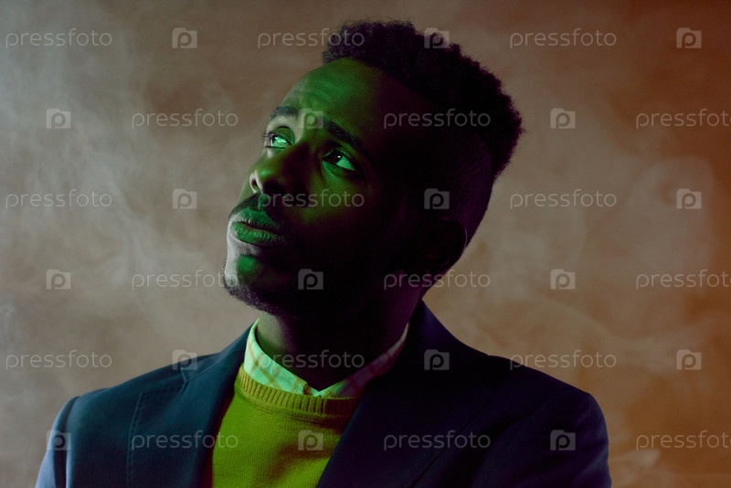 Концептуальный портрет молодого чернокожего человека в дыму
